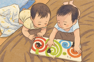 ☆二人とも立ち歩いて転んでおでこに青たんをつくっている